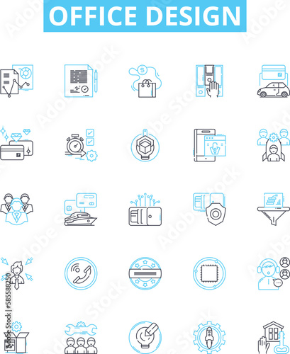 office design vector line icons set. Office, Design, Furniture, Interior, Decor, Layout, Organisation illustration outline concept symbols and signs