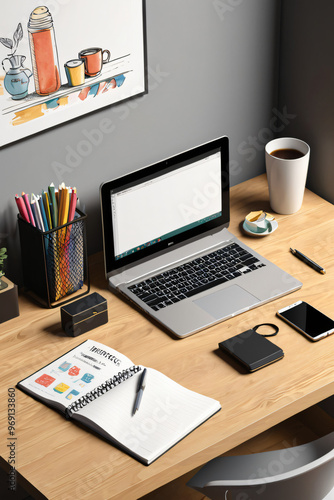 office desk with laptop