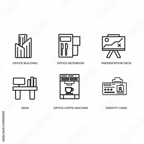 Office Line Icon Set Vector Template. Simple Black Line Icons