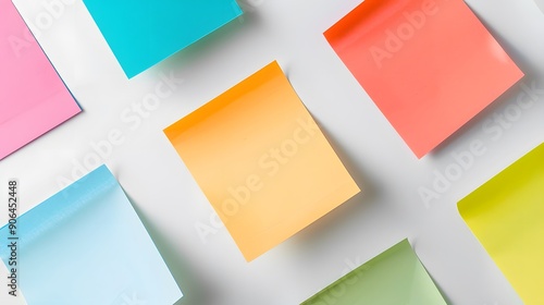 Office reminder paper note with adhesive tape, isolated on a white desk background