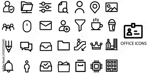 Office simple concept 28 icons set. Contains such teamwork, documents, devices, and more .Vector illustration.