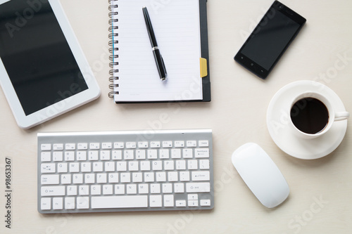 Office supplies on the wooden desk