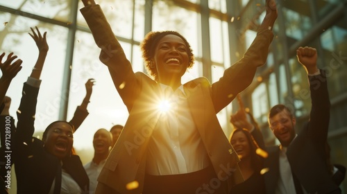 Office Team Excitedly Celebrates Major Success with Confident CEO