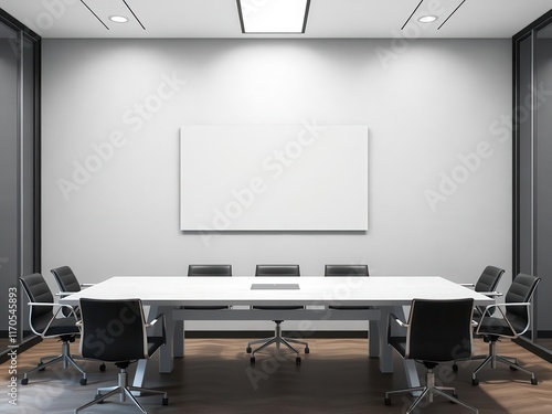 Office wall art mockup with interior background and meeting table, workplace, office, conference