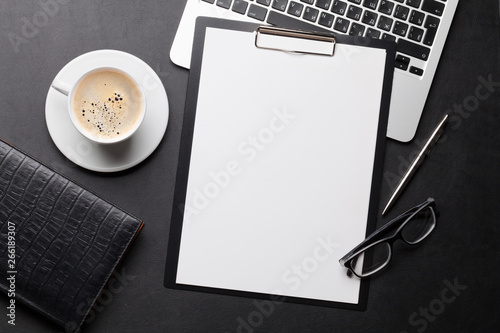 Office workplace table with blank paper page