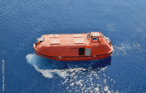 Offshore oil and gas platform test drive lifeboat. To ready at all times.