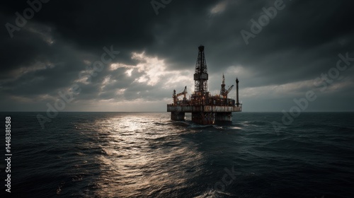 Offshore Oil Rig Under a Stormy Sky