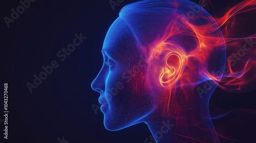 Ohr als Portrait Nahaufnahme Ohrmuschel Krankheiten am Ohr wie Hörsturz Generative AI