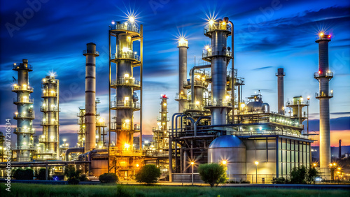 Oil and gas factory illuminated at night view, factory, oil, gas, industry, night, illuminated, power, energy, refinery