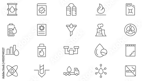 Oil and Gas line icon set. Renewable energy, alternative, fuel station, Automation, Warehouse, Manufacturing, Worker, Crane, Chemical, Assembly line icon set. UI thin line icon pack.