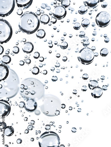 oil bubbles floating against a light background. The bubbles are semi-transparent with a reflective quality