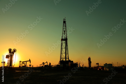 Oil drilling derrick in oilfield