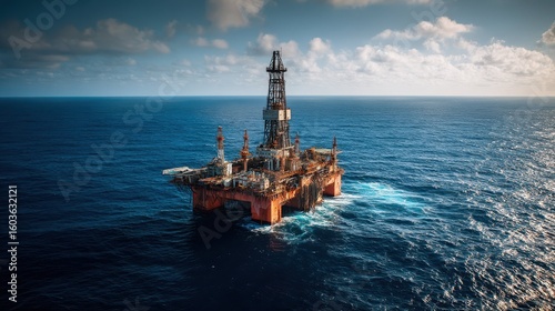 Oil Drilling Platform in the Ocean Surrounded by Blue Water