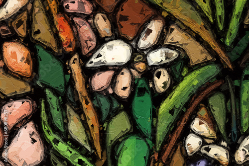 Oil painting and various flowers, tulips, beautiful wedding illustrations
