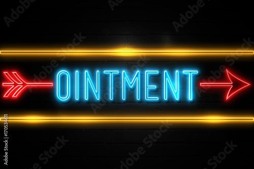 Ointment - fluorescent Neon Sign on brickwall Front view