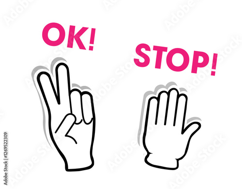 ok. stop. Up hand. Gesture. Set of empty templates background.
