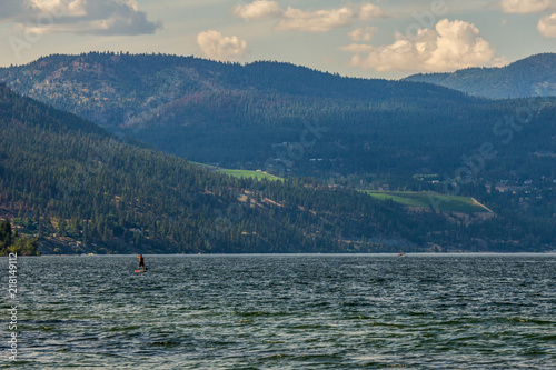 Okanagan lake at summer day with clouds on the sky.