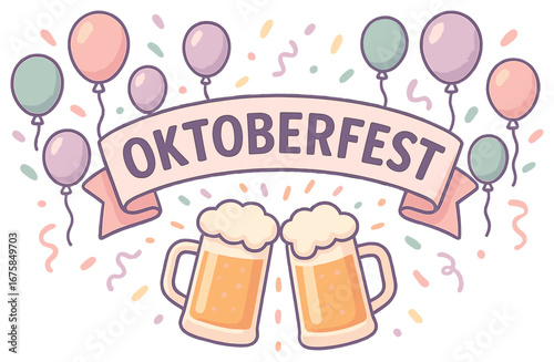 Oktoberfest celebration linear icon set. featuring balloons, beer mugs, confetti, banner