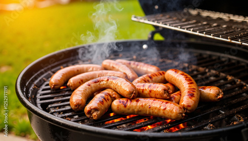 Oktoberfest. Grilling sausages on the barbecue, mouthwatering cookout delight