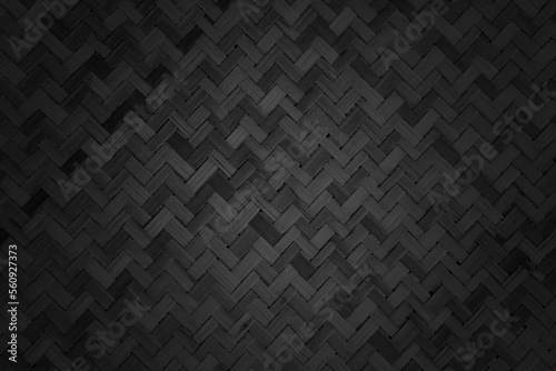Old black bamboo weave texture background, pattern of woven rattan mat in vintage style.