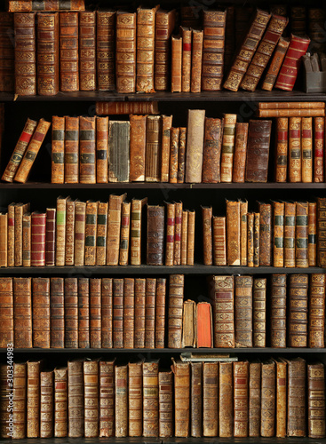 old books on wooden shelf