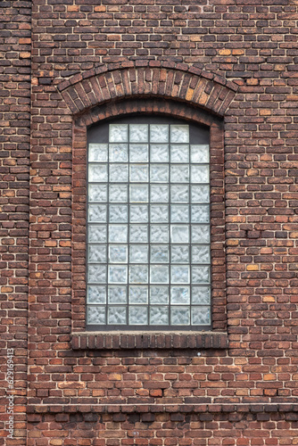old brick wall with destroyed windows of an industrial building