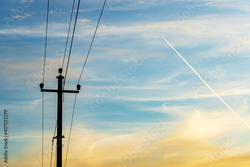 Old concrete electric poles in countryside with the beautiful sky in background.