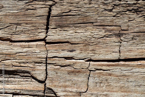 Old cracked pine wood texture or background, closeup. Wooden rough surface