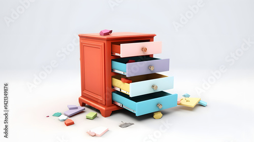 Old Drawer Damaged Abandoned colorful isometric 3D