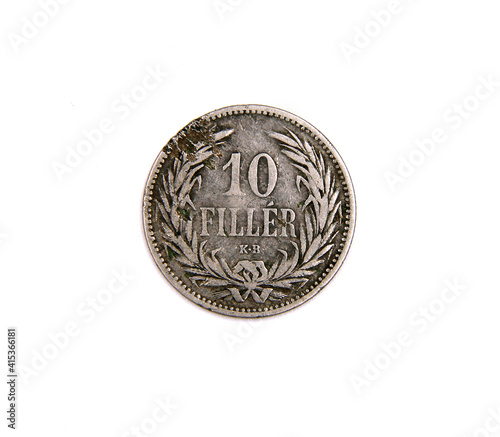Old european silver coin on white background