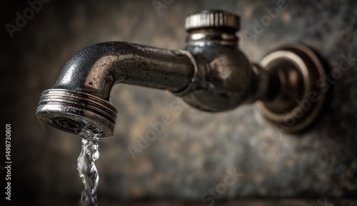 Old faucet drips water