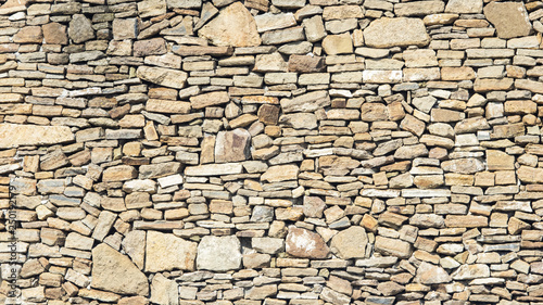 Old grey and brown rough stone wall, closeup texture background, selective focus, shallow DOF