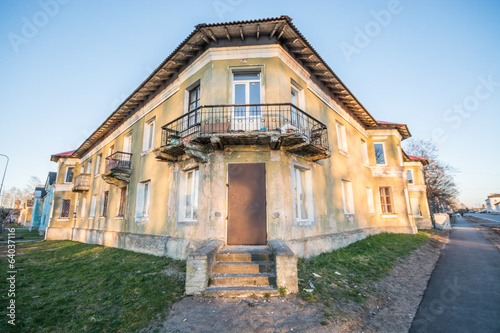 old house in small town, black and white photography