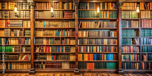 Old library with colorful books on wooden shelves in a warm and cozy atmosphere, wood, literature, wood, literature