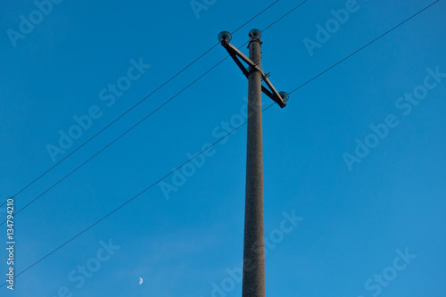 Old light pole and blue sky with moon