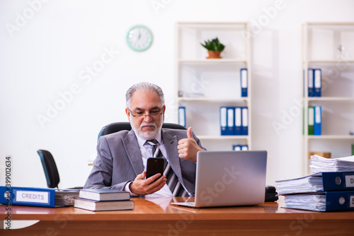 Old male businessman employee working in the office