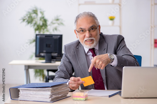Old male employee sitting in the office