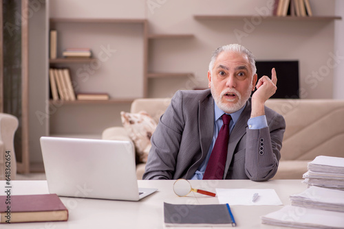 Old male employee working from home during pandemic