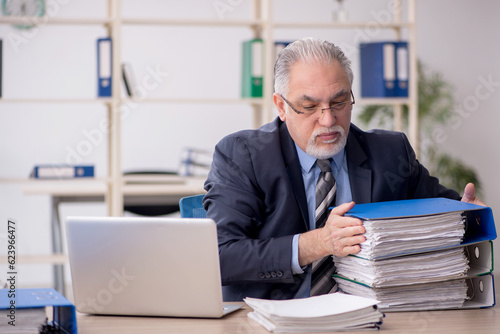 Old male employee working in the office