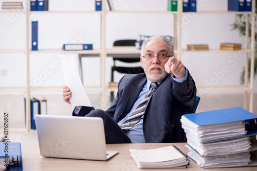 Old male employee working in the office