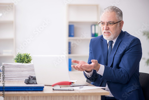 Old male employee working in the office
