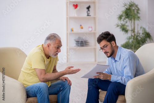 Old man visiting young male psychotherapist