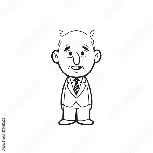 Old man with formal suit black and white vector illustration for classic portrait artwork design
