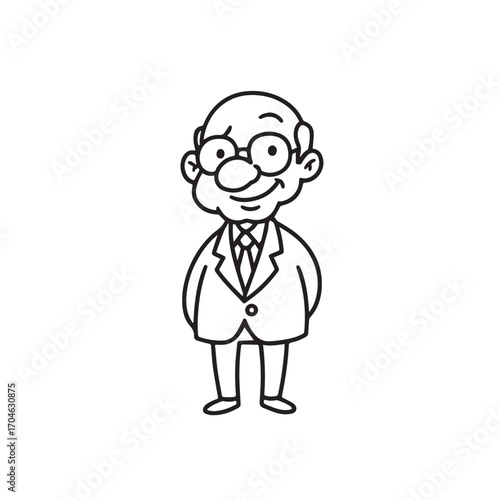 Old man with formal suit black and white vector illustration for classic portrait artwork design