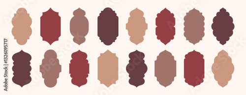 Old mosque window shapes in oriental arabic style. Islamic arab door, frames, arabian arch silhouettes. Set of muslim architecture geometric design elements, moroccan minimal arcs. Ramadan kareem gate