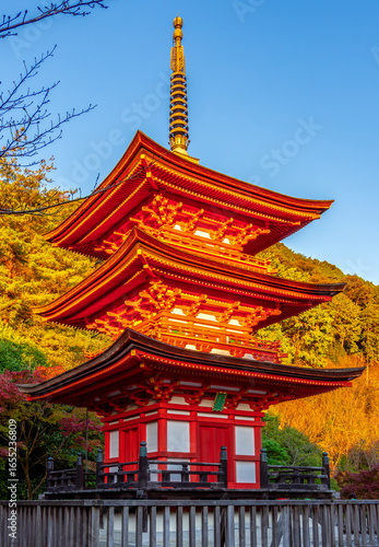 Old pagoda of Kiyomizu-dera buddhist temple in autumn, Kyoto, Japan