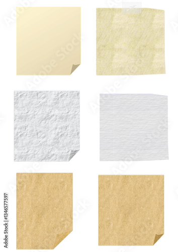 Old paper aesthetic sticky notes. Clip art vintage paper for notes, antique pastel parchment and textured paper for artwork. Aged appearance