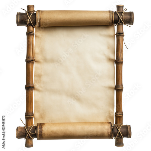 old paper with bamboo frame isolated on transparent white background, clipping path