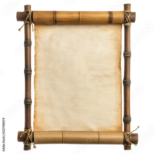 old paper with bamboo frame isolated on transparent white background, clipping path