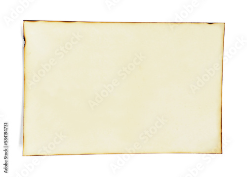 Old photo paper burns at edge of paper isolated on white background.